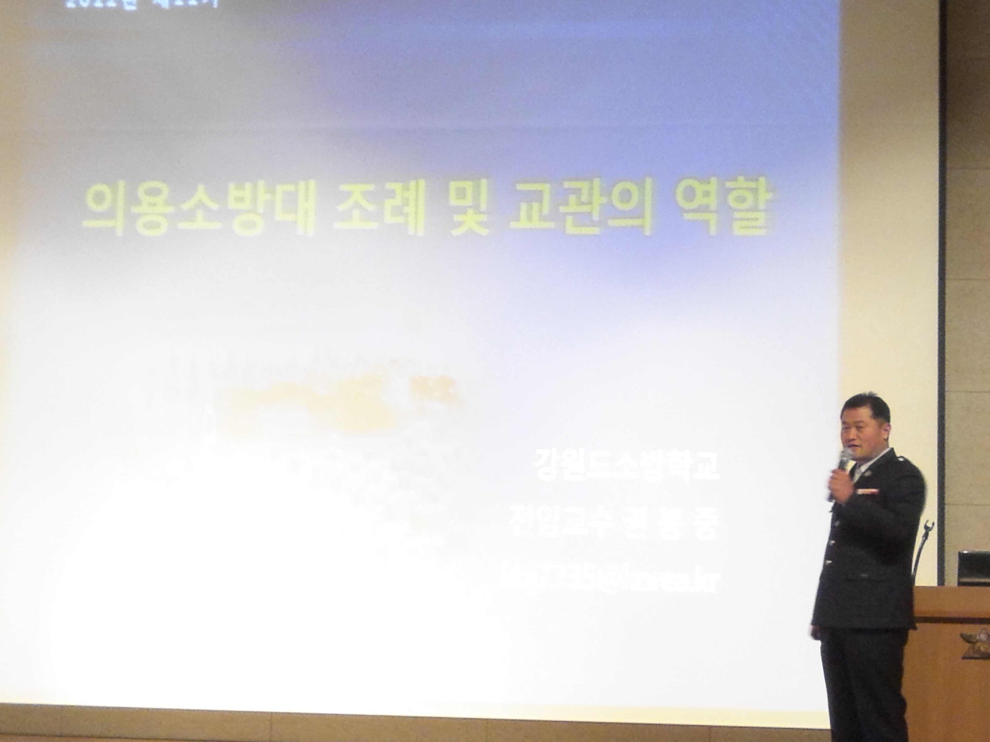19일은 정병도 소방학교장님의 인사말씀을 시작으로 이론교육이 진행되었습니다.(1교시: 의용소방대 조례 및 교관의역할 -권봉중교수-, 2교시: 소방시설활용 -이윤열교수-, 3교시: 화재의 발생원 및 진화법 -이하규팀장-, 4교시: 불확실한 상황인식과 이상심리 - 권학주팀장-) 위트(wit)와 더불어 꼭 알아두어야 할 내용만 뽑아 쉽고 빠르게 진행해주신 덕분에 이해가 쉬웠습니다.