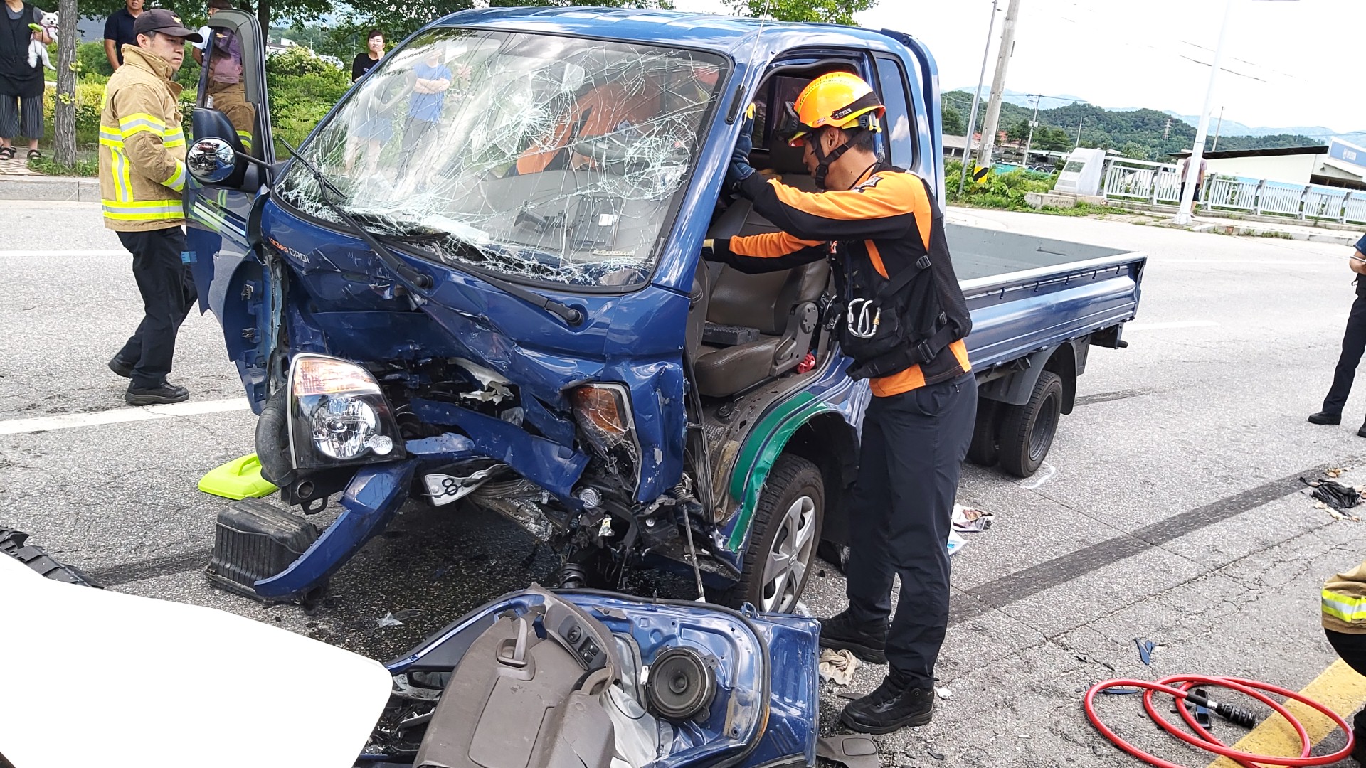 6. 22.(토) 13:31, 모닝과 포터 충돌, 중경상 3명(모닝2-중상, 포터1-경상), 응급처치 및 병원이송