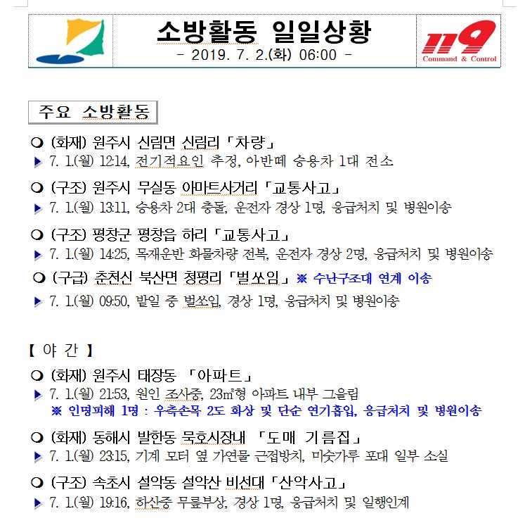소방활동 일일상황(7. 2. 화) 06:00