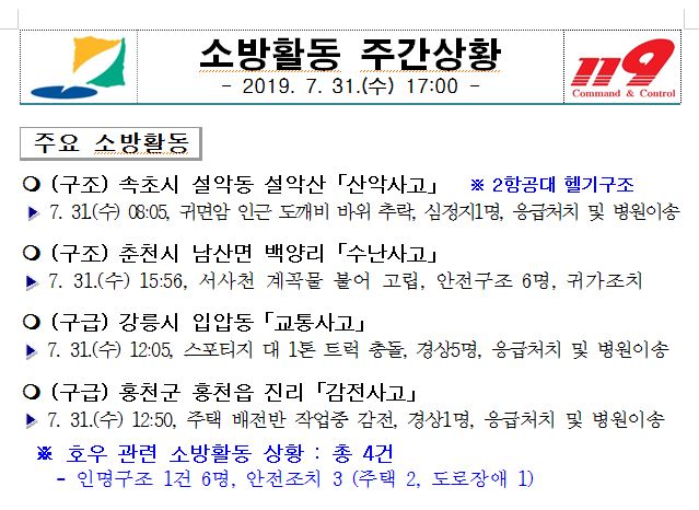 소방활동 주간상황(7. 31. 수) 17:00