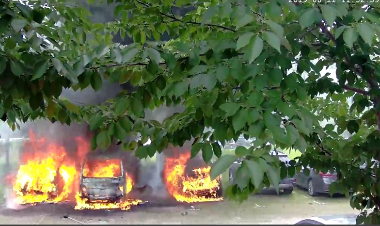 내용 : 주차장에 주된 1톤화물(택배차량)에서 발화되어 양쪽 옆에 주차된 LF쏘나타(택시) 및 아우디 A7, 캡티바 차량으로 연소확대된 화재임