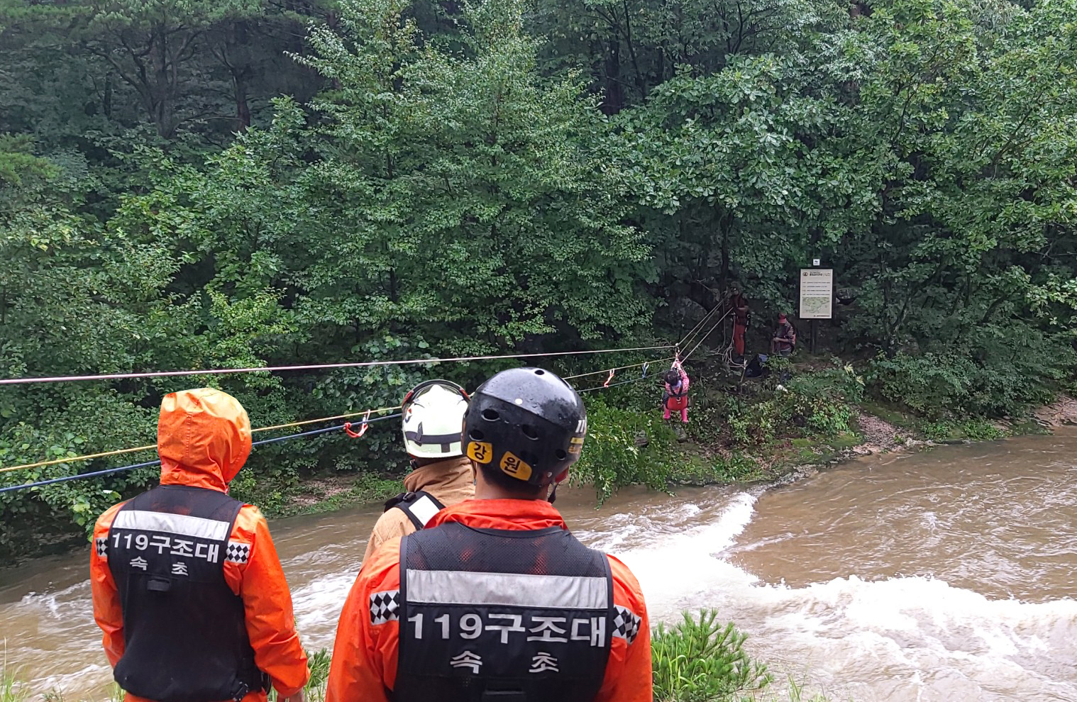 - 내용 : 산행 중 계곡물이 불어 고립된 상황으로 구조대 출동 로프를 이용하여 안전하게 구조 후