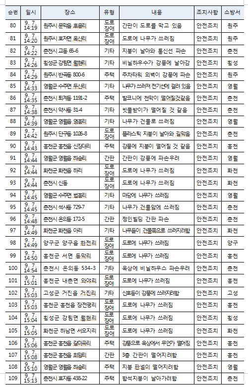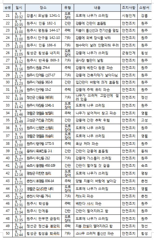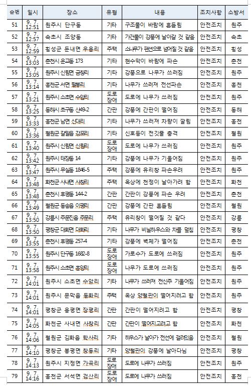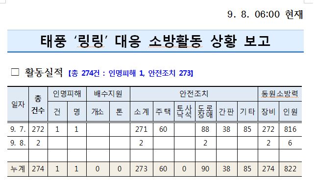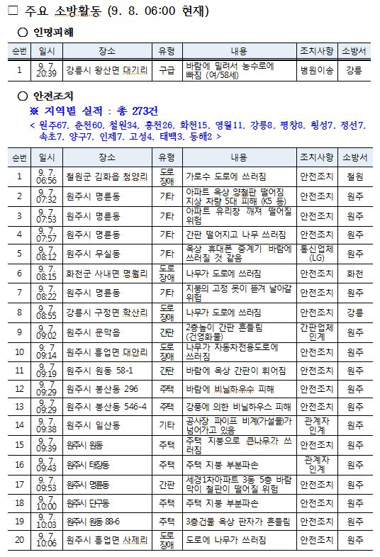 태풍 관련 소방활동 상황