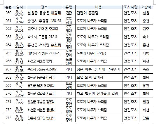 태풍 관련 소방활동 상황 2