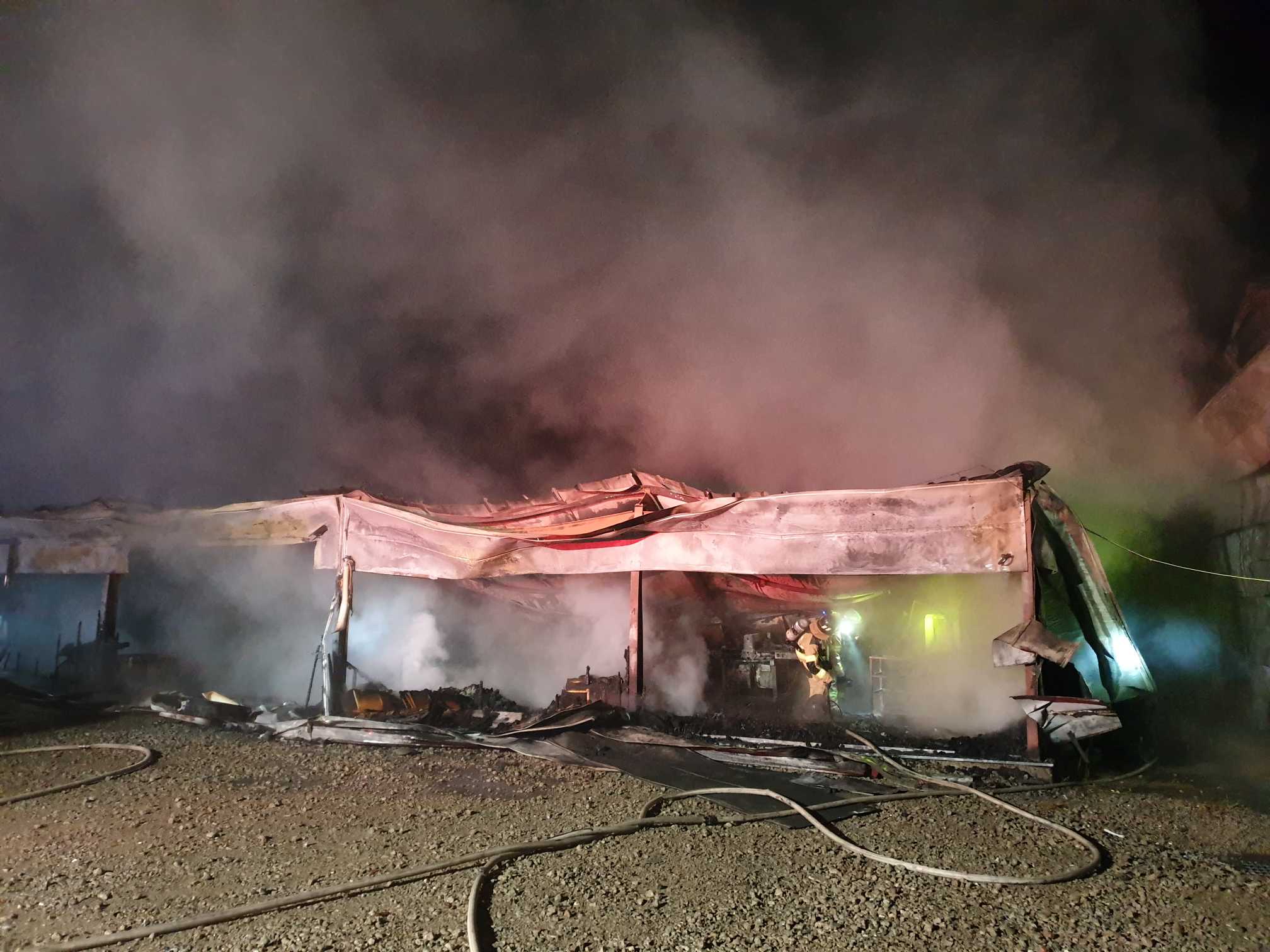 - 1. 7.(화) 01:33, 원인조사 중, 철골조 샌드위치판넬 1층 198㎡ 및 기계류 등 전소