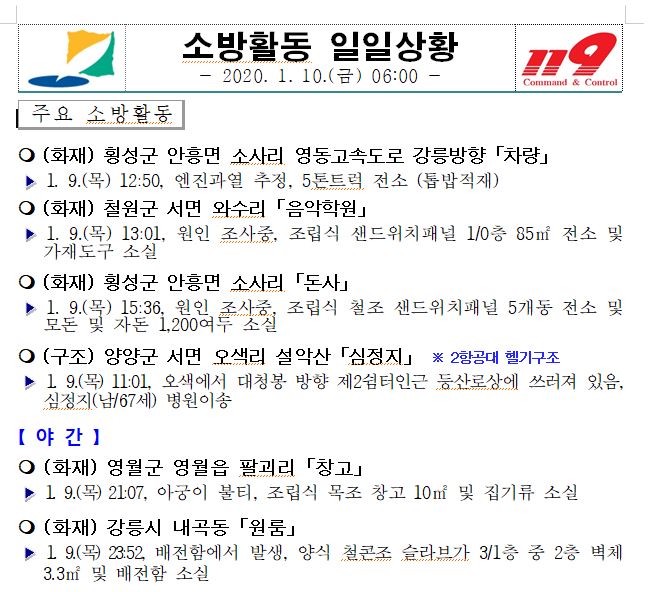 소방활동 일일상황 (1. 10. 금) 06:00