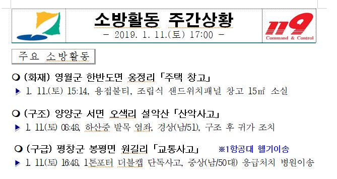 소방활동 주간상황 (1. 11. 토) 17:00