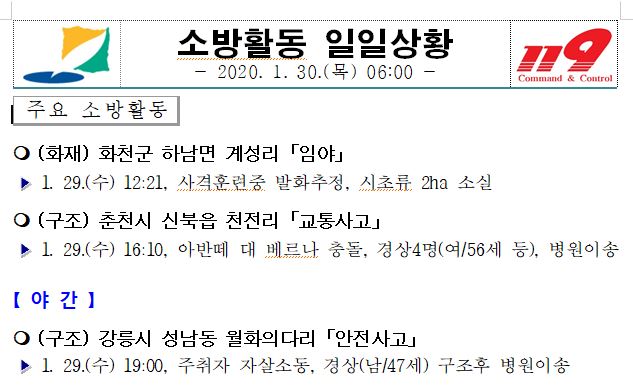 소방활동 일일상황 (1. 30. 목) 06:00