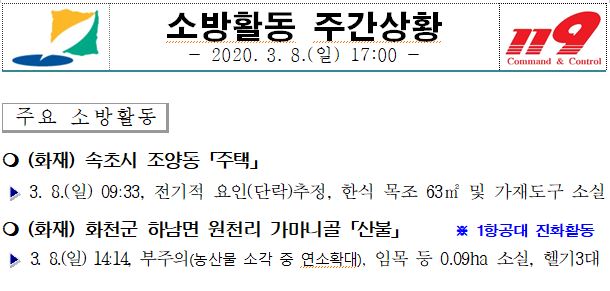 소방활동 주간상황 (3. 8. 일) 17:00