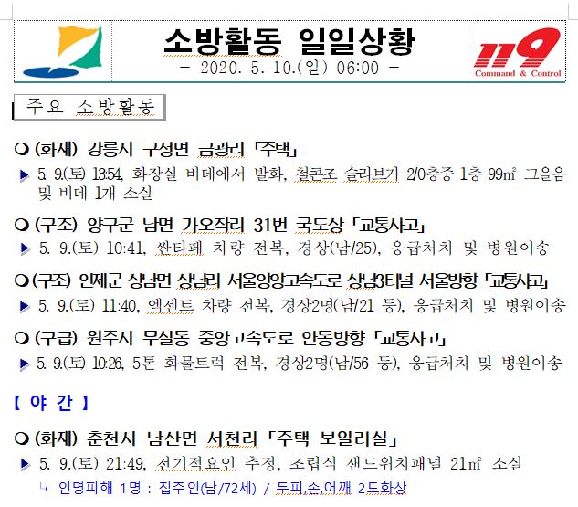 소방활동 일일상황 (5. 10. 일) 06:00