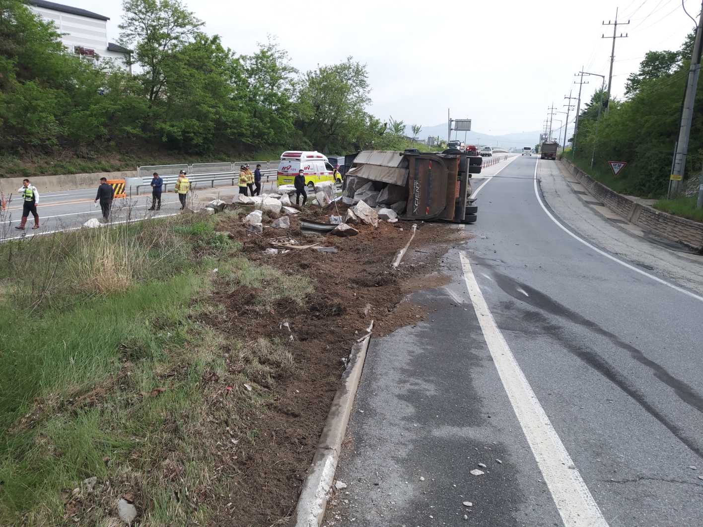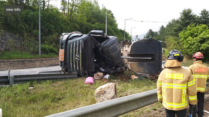 5. 12.(화) 08:41, 25톤 덤프트럭 전복사고, 사망(남/62), 미이송(경찰인계)