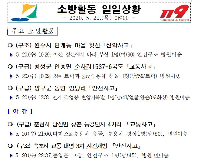소방활동 일일상황 (5. 21. 목) 06:00