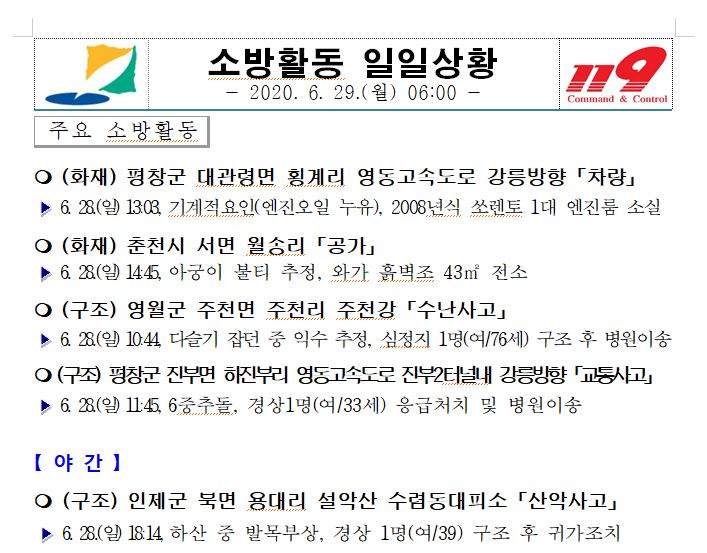 소방활동 일일상황 (6. 29. 월) 06:00