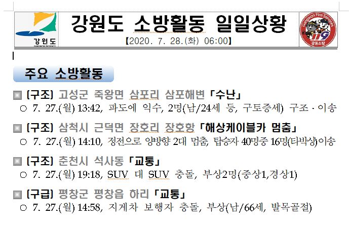 소방활동 일일상황 (7. 28. 화) 06:00