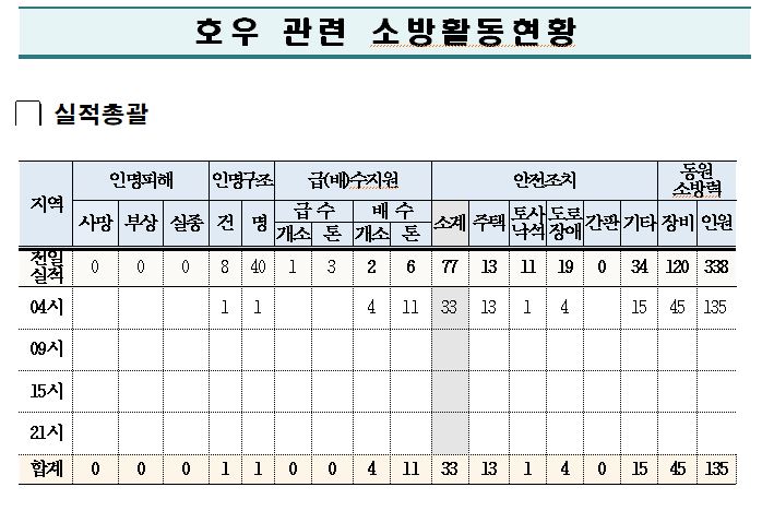 - 호우 관련 소방활동 현황