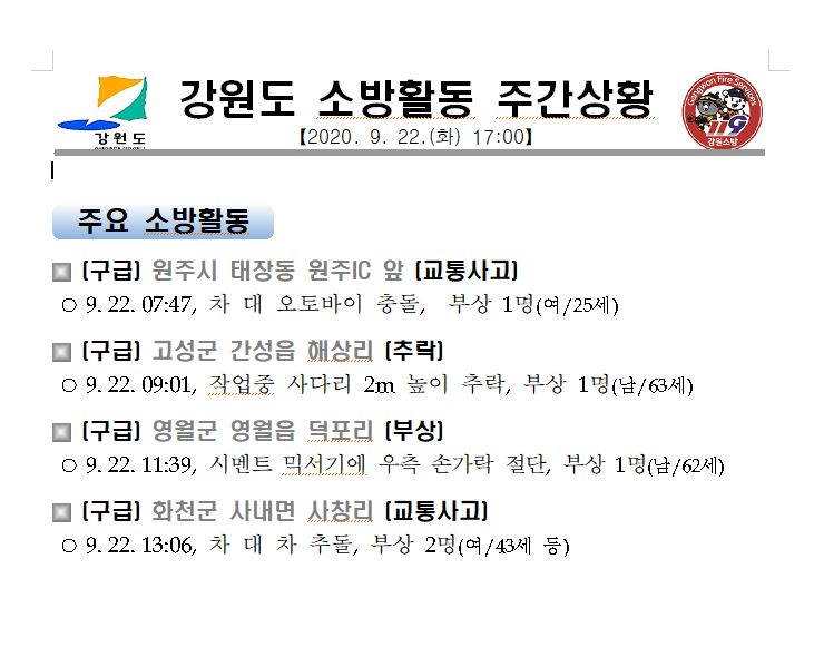 소방활동 주간상황 (9. 21. 월) 17:00