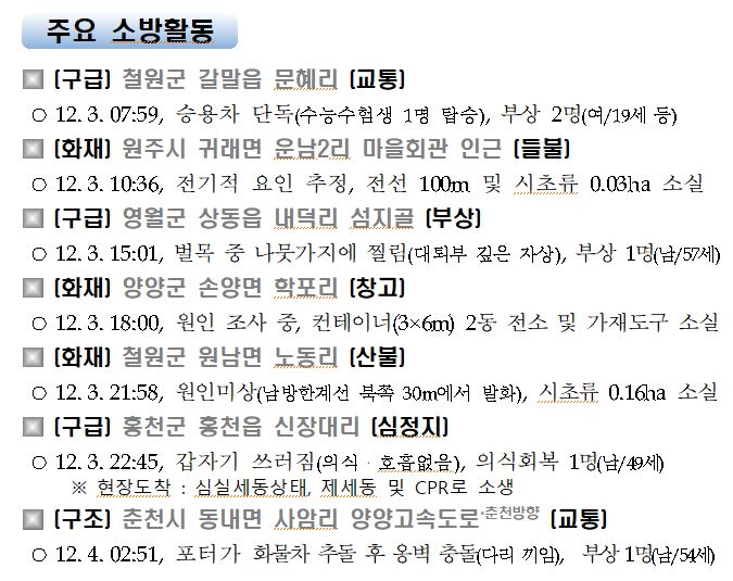 강원도 소방활동 주간상황(12. 3. 목) 17:00