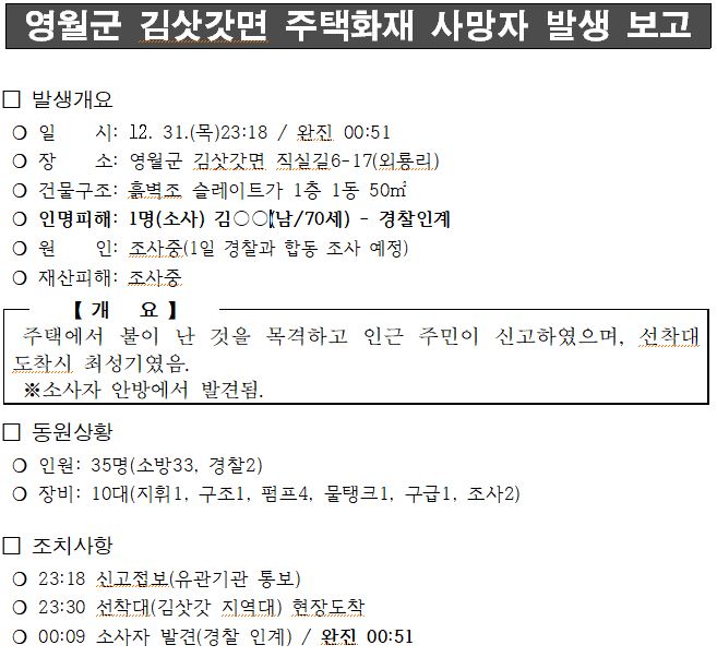 영월군 김삿갓면 외룡리 주택화재(12. 31. 목. 23:18)