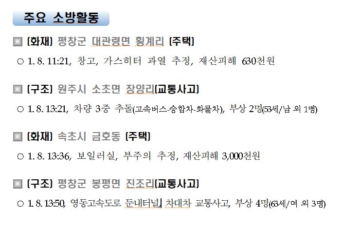 강원도 소방활동 주간상황(1. 8. 금) 17:00