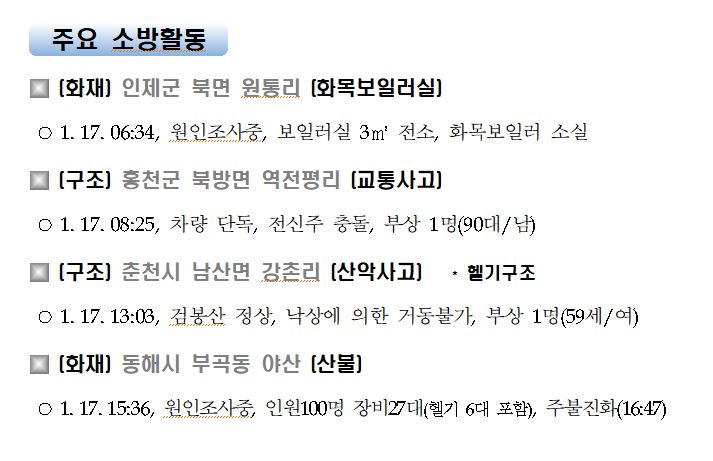 강원도 소방활동 일일상황(1. 17. 일) 17:00