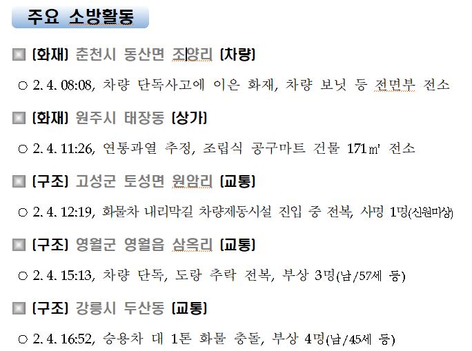 강원도 소방활동 주간상황(2. 4. 목) 17:00