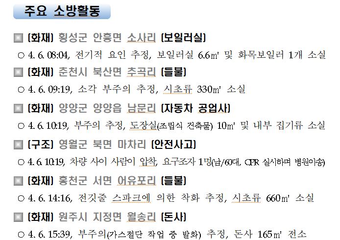 강원도 소방활동 주간상황(4. 6. 화) 17:00