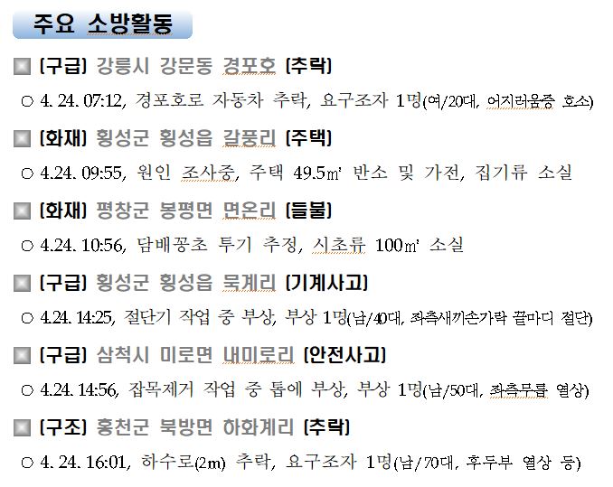 강원도 소방활동 일일상황(4. 25. 일) 06:00