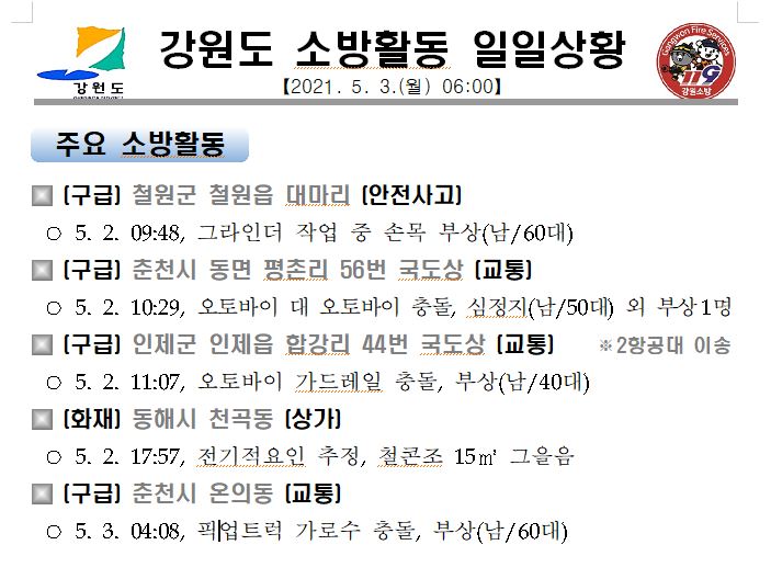 강원도 소방활동 일일상황(5. 3. 월) 06:00