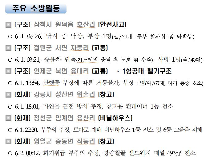 강원도 소방활동 일일상황 (6. 2. 수) 06:00