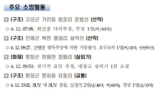 강원도 소방활동 주간상황 (6. 12. 토) 17:00