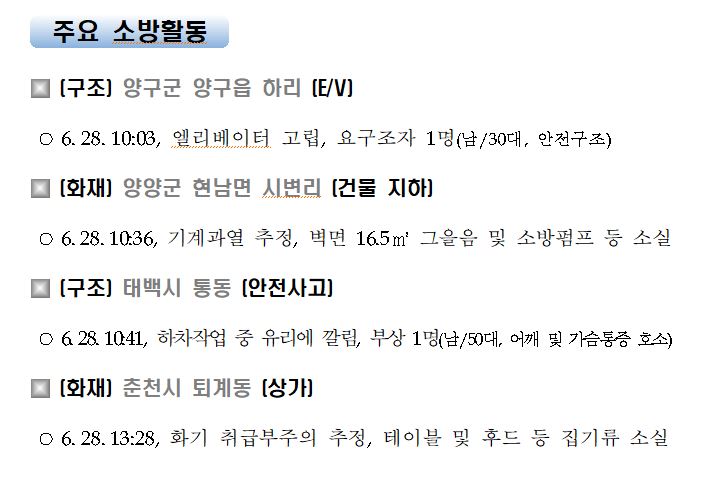 강원도 소방활동 일일상황 (6. 28. 월) 06:00