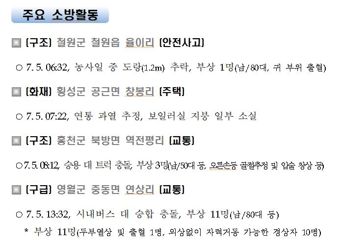 강원도 소방활동 주간상황 (7. 5. 월) 17:00
