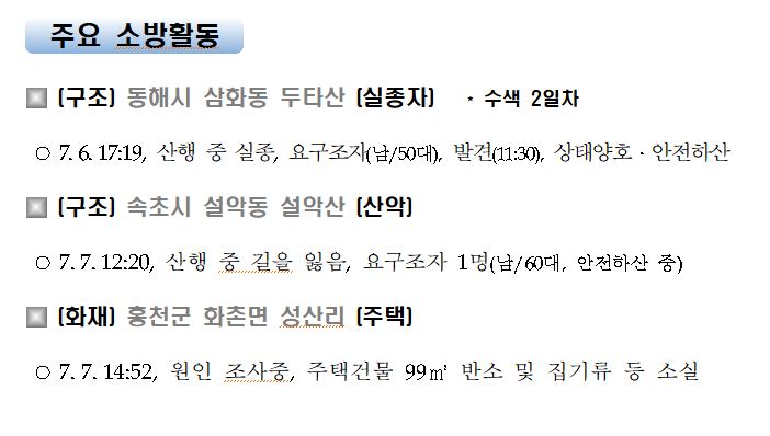 강원도 소방활동 일일상황 (7. 7. 수) 17:00