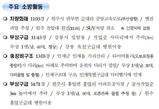강원도 소방활동 주간상황 (7. 14. 수) 17:00