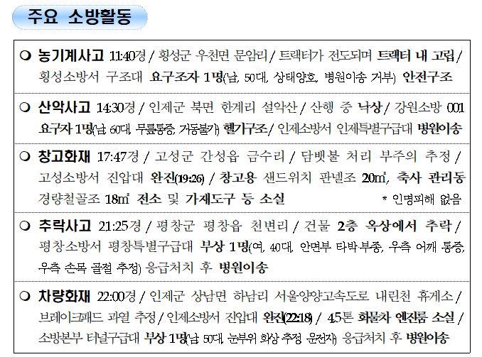강원도 소방활동 일일상황 (7. 28. 수) 06:00