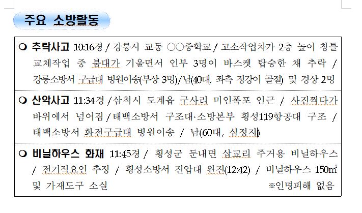 강원도 소방활동 주간상황 (8. 20. 금) 17:00