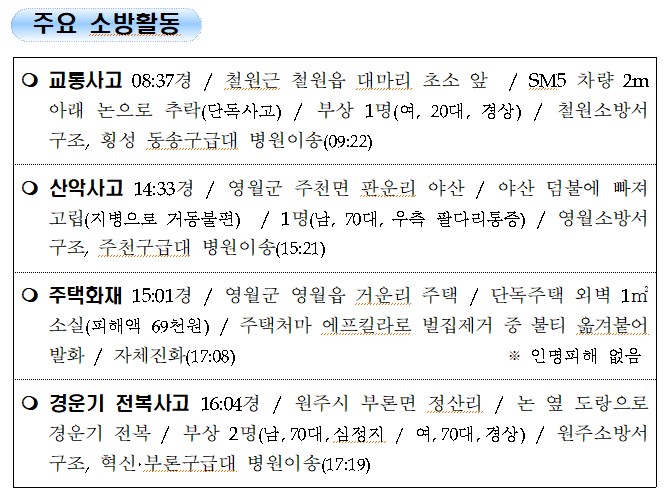 강원도 소방활동 일일상황 (9. 9. 목) 06:00