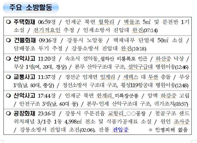 강원도 소방활동 일일상황 (10. 27. 수) 06:00