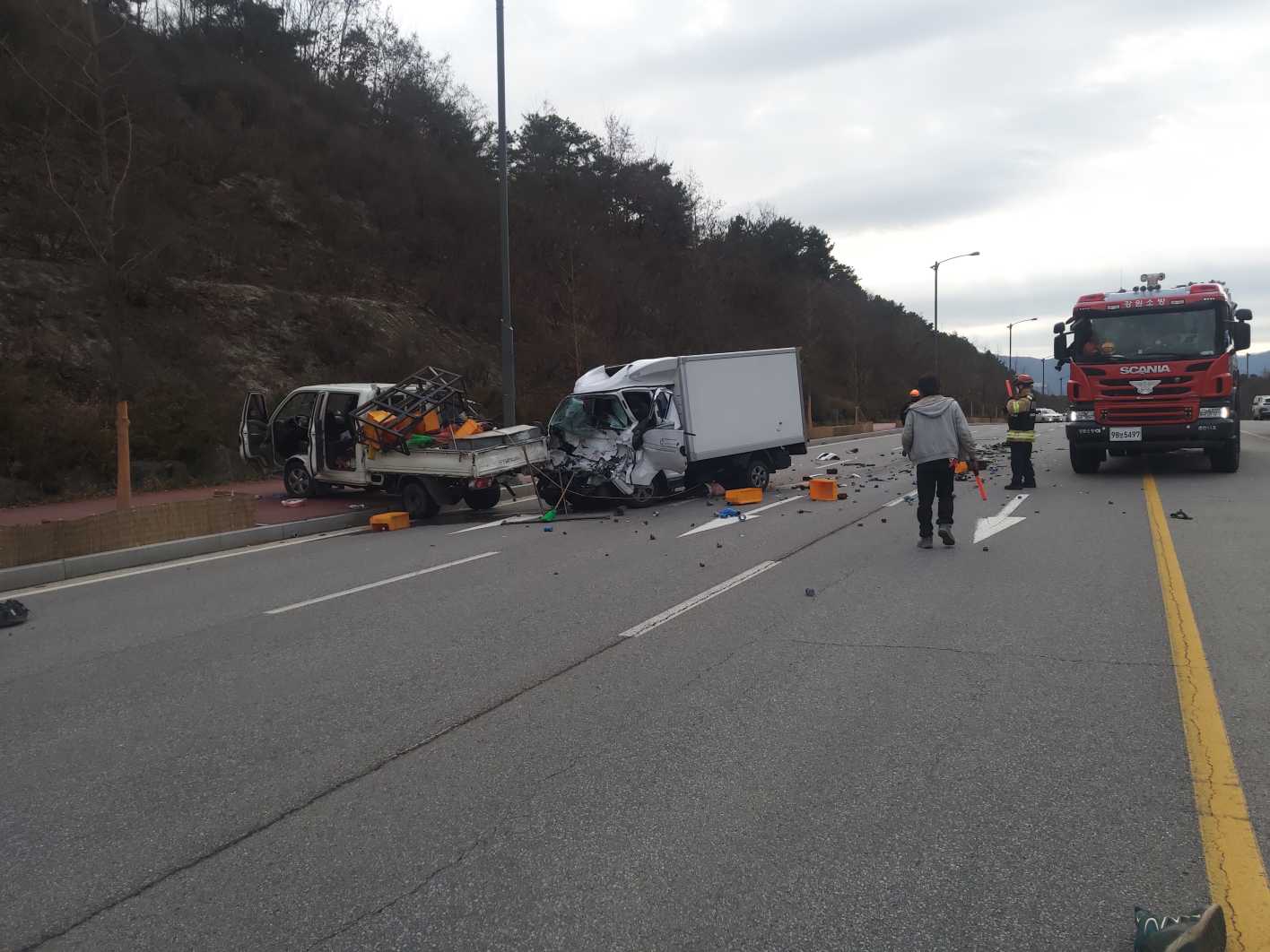 - 사망 : 남/30대, 남/40대, 남/60대 (1톤포터 관계자 추정)