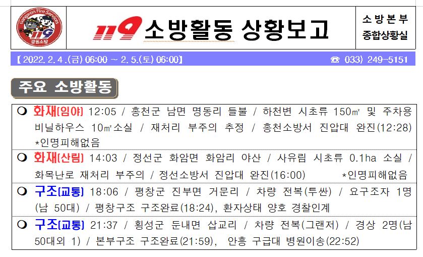 119 소방활동 상황 보고(2. 5. 토) 06:00