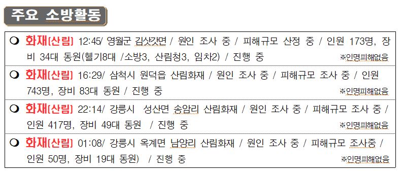 119 소방활동 상황보고(3. 5. 토) 06:00