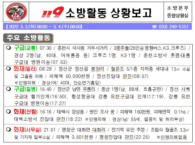119 소방활동 상황보고(5. 4. 수) 06:00