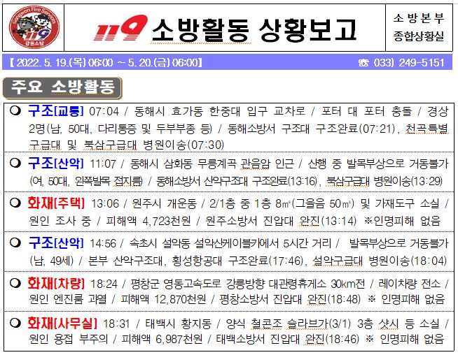 119 소방활동 상황보고(5. 20. 금) 06:00