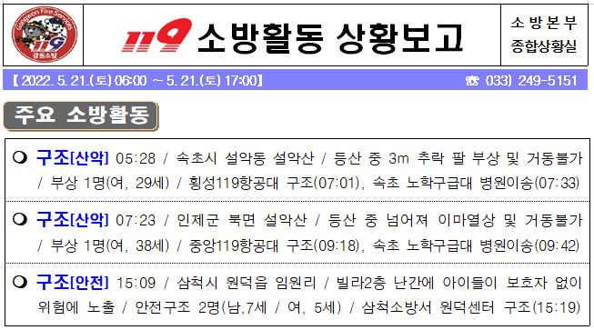 119 소방활동 상황보고(5. 21. 토) 17:00