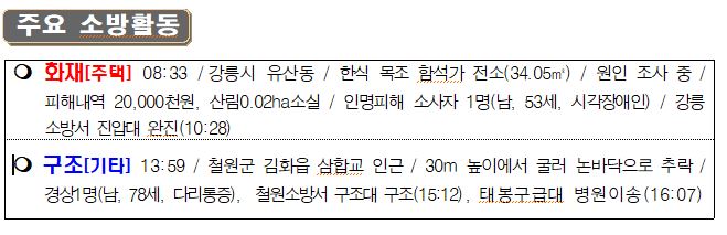 119 소방활동 상황보고(5. 26. 목) 17:00 및 강릉 화재진압 사진
