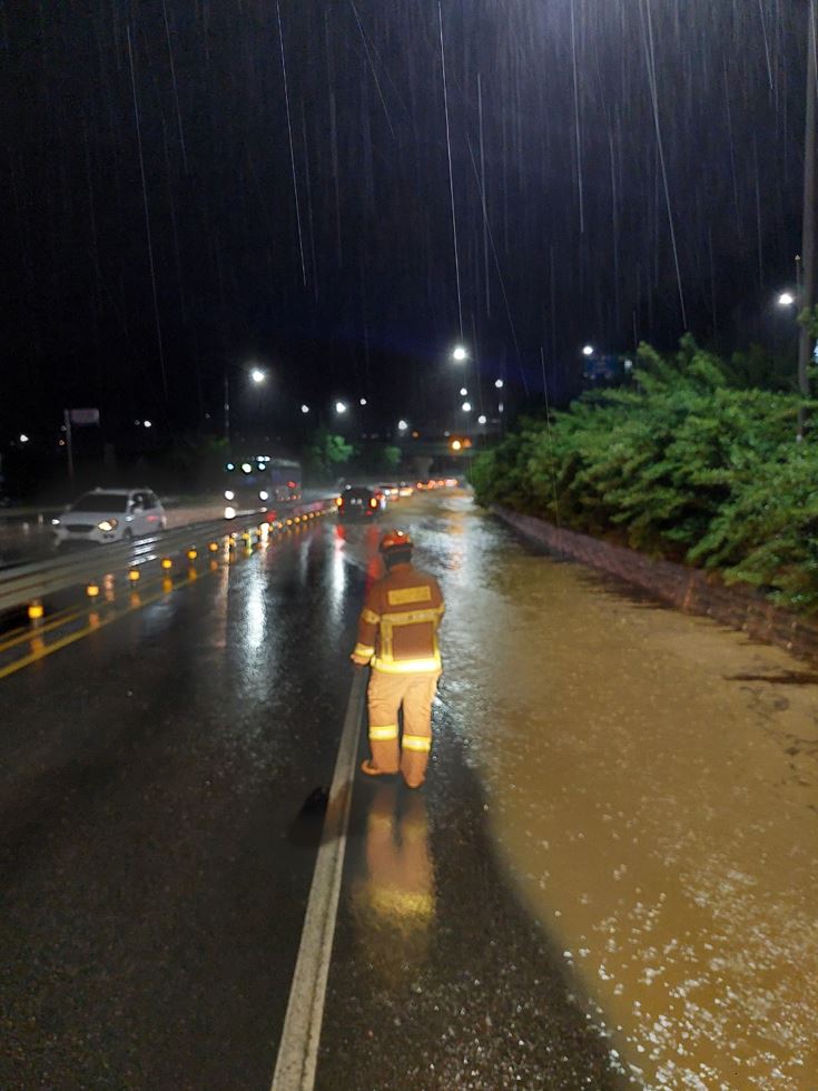 춘천시 석사동 중앙고속도로 진입 전 도로 침수.JPG