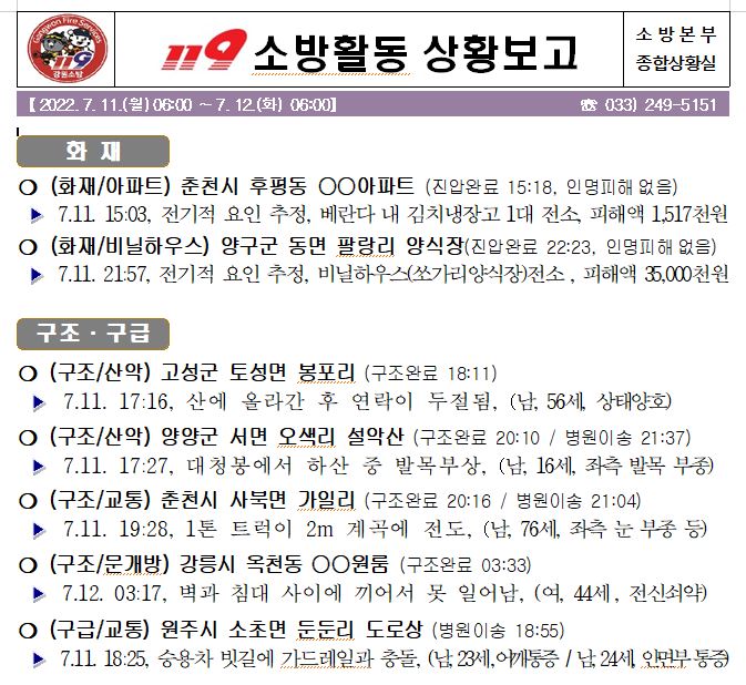 119 소방활동 상황보고(07. 12. 화) 06:00
