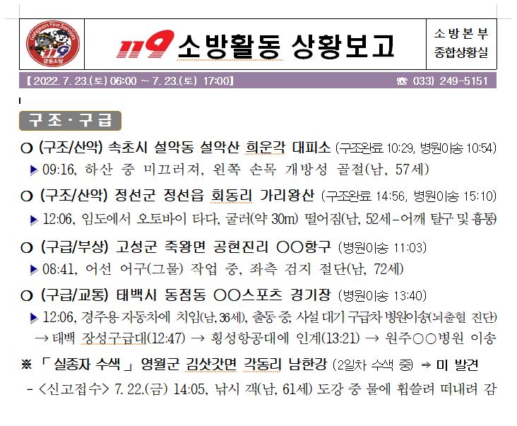 119 소방활동 상황보고(7. 23. 토) 17:00