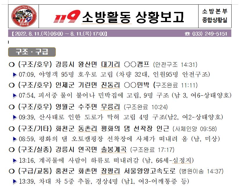 119 소방활동 상황보고(8. 11. 목) 17:00