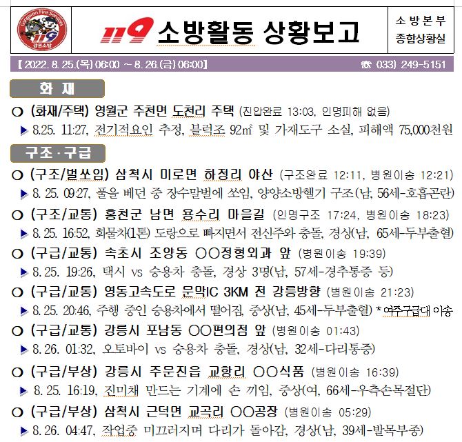 119 소방활동 상황보고(8. 25. 목) 17:00